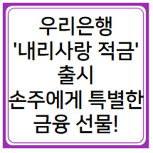 바로 **우리은행에서 나온 ‘내리사랑 적금’**입니다. 이름부터 참 정겹지요? 아래 내용 천천히 읽어보시면, 누구나 쉽게 따라 하실 수 있습니다.